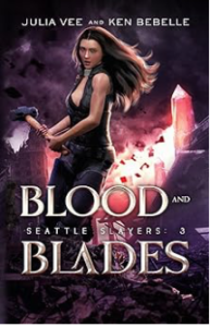 Released today: the audiobook for Blood and Blades, book three in the Seattle Slayers urban fantasy series by Julia Vee and Ken Bebelle.