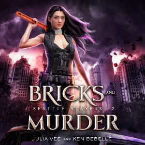 Today is the launch of Julia Vee & Ken Bebelle’s second audiobook in the Seattle Slayers series, Bricks and Murder. Follow the continuing adventures of Roxy Lim, now an inked member of the Seattle Slayers, tasked with enforcing the Oceanic Pact in a city teeming with deadly shifters, devious vampires, and scheming fae. Join the newest Seattle Slayer on her wildest mission yet as she battles through the largest peril of vampires she’s ever come across and one deadly rogue leader who wants to add Roxy to his team.